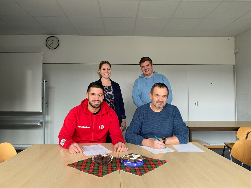 Am 07.12.2023 hat die Herbert-Binkert-Schule einen Kooperationsvertrag mit der Deutschen Bahn unterschrieben. Von dem Vertrag profitieren beide Seiten. Durch den Vertrag sollen die Berufsorientierung und der Praxisbezug an unserer Schule verstärkt werden. Mit einem Unternehmen wie der Deutschen Bahn, das über 50 Ausbildungsberufe anbietet, wird dies gelingen. Unter anderem kann bei Betriebsbesichtigungen das Unternehmen besser kennen gelernt werden und beim Bewerbertraining werden die Schüler auf Bewerbungsgespräche vorbereitet.